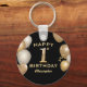 1st Birthday Party Black and Gold Balloons Key Ring