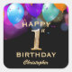 1st Birthday Party Black and Gold Balloons Square Sticker
