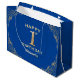 1st Birthday Party Blue and Gold Glitter Frame Large Gift Bag