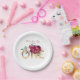 1st Birthday Party Burgundy Red Flowers Paper Plate