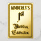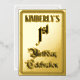 The front of this fancy first birthday party/celebration foil invitation/announcement design features the message “1st Birthday Celebration” in opulent script-style text. It also has a custom name. The back features personalised details about the event, such as the date, time, location, and any other information that may be useful. Opulent, luxurious, editable invitations like these might be used to invite guests to a birthday celebration being held in celebration of somebody’s 1st birthday. [~Z0000596]