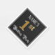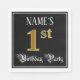 This fancy and opulent birthday paper napkin design features an editable name and the message “1st Birthday Party”. The large number “1st” has an imitation/faux gold-inspired colouring pattern, and the words “Birthday Party” are in elegant script-style text. The background is coloured black by default (although it can be customised). Luxurious, elegant paper napkins like this might be used at a birthday celebration being held in celebration of somebody’s first birthday. [~Z0000565]