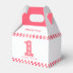 Celebrate your little one's first milestone with this cute pink 1st birthday party favour box. Designed with a bold number one and retro chequerboard pattern, it perfectly highlights the occasion in a modern and trendy way. It's peachy blush pink and white colour palette is perfect for a baby girl's special day.