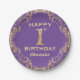 1st Birthday Party Purple and Gold Glitter Frame Paper Plate