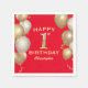 1st Birthday Party Red and Gold Balloons and Confetti Napkin. For further customisation, please click the "Customise it" button and use our design tool to modify this template.
