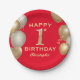 1st Birthday Party Red and Gold Balloons Paper Plate