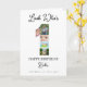 This card is great fun and good quality. I loved the humour inside and on the back. There is the opportunity to change the orientation of this card from landscape to portrait, which I did. It is relatively straightforward to amend the typeface to fit the new orientation. It was well packaged with no plastic. The printing on this card is excellent.