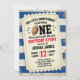 Invite your guests in style with this super cute sports football ticket 1st birthday party invitation. This design features a rustic background of blue and white weathered wood, In the centre is a football with all your party details on a ticket shape. It reads, "Our Little Quarterback is turning One, Please Join us for this Epic Birthday Event, in honour of, name of your child" date of the party and address with RSVP below. Back of the card has blue and white stripes in a matching weathered wood. This is a special personalised invitation your family and friends will adore and keep as a memento. Designed by artist ©Susan Coffey and Tim Coffey.