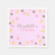 This pretty pink "twinkle twinkle little star" themed birthday paper napkin is perfect for a baby girl's first birthday party. It features a star pattern on a pink background, faux glitter accents, and text that you can customise with your own details. The template is customisable in the listing editor.