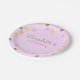 This pretty pink "twinkle twinkle little star" themed birthday paper plate is perfect for a baby girl's first birthday party. It features a star pattern on a pink background, faux glitter accents, and text that you can customise with your own details. The template is customisable in the listing editor.