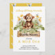 Turn your little one’s first birthday into an unforgettable safari adventure with this playful 1st birthday Wild One jungle animals invitation! The design features a curious baby monkey, bold tropical greenery, and cheerful yellow and white florals. This Wild One design is perfect for a jungle-themed party. The fun lettering and lively vibe set the stage for a day filled with animal games, jungle snacks, and wild memories. Personalise with your party details and invite your guests to join the celebration!