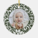 Commemorate your little one's first Christmas with our 1st Christmas Forest Green Photo Elegant Festive Ceramic Ornament. This charming keepsake features a customisable baby photo framed within a circular design on a green background adorned with delicate white patterns. Celebrate this milestone by personalising this ornament with your baby's adorable photo—a treasured addition to your holiday decorations. Crafted with high-quality ceramic, this ornament radiates warmth and joy, making it a perfect gift or a cherished family memento for years to come.