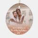 This elegant first Christmas ornament features faux rose gold ombre glitter and two of your own wedding photos with the sentiment "Our 1st Christmas Mr. and Mrs" with your last name and the year. Easy to customize with your own photos.
