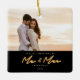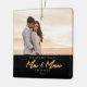 1st Christmas as Mr. & Mrs., golden neon lettering, photo holiday ceramic ornament keepsake. Coordinating neon star pattern backing.