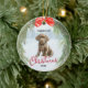 Super cute brown labrador retriever puppy design with pine wreath frame for Christmas festive celebrations. You have the option of keeping the dog piccy or replacing with your own pet photo. Add your pets name / year by editing the text template. Makes a great present idea for dog lovers.