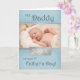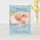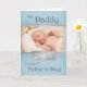 1st Father's Day custom photo card to Daddy with blue dotted background and metal-like plate for personalising with the current year.