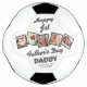 Cute new father soccer ball gift featuring a white background that can be changed to any colour to represent your football team, a photo collage of your baby, the saying "happy 1st father's day daddy", and the childs name.