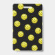 Customise this fun pickleball championship tournament 1st place badge. Design features a yellow pickleball ball illustration with grunge yellow pickleball champions lettering curved around the ball. Followed by customised 1st place!