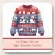 1st Place Winner Ugly Sweater Contest Red Blue Coaster