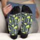 1st Wedding Anniversary green peridot gem custom socks. Graphic peridot green gemstone 1st wedding anniversary design. Personalise with the names of your own couple. Other matching items are available. Art and design by Sarah Trett for www.mylittleeden.com and www.mylittleedenweddings.com