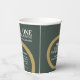 Peridot and gold ring modern fun fact and wedding anniversary party paper cups. Personalise these anniversary cups with your own name and fun facts about your couple. Other matching items are also available. © Original graphic ring design by Sarah Trett for www.mylittleeden.com and www.mylittleedenweddings.com on Zazzle.