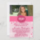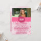 This graduation party invite has a pink grunge border and a circle with the year of the graduate printed in a white grungy font. The top of the 5x7 invite has a place for your to customise your personal photo. On the bottom half, you can easily personalise your party information. The text on the bottom is written in a hot pink grungy cool font.