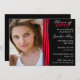 This customisable graduation party invitation has a pink red colour zebra print design between your party information and a personalised photograph that you can easily customise.