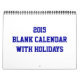 In 2015 Blank Calendar With Holidays with blue wire you can find blue customisable text on front page and holidays and events in U.S. and Canada.