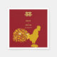 A beautiful addition to a rooster year Chinese style wedding. This wedding celebration party napkin has a festive design of a rooster with a confetti tail in colourful golden yellow hues against a dark red background that's customisable. It has the double happiness symbol near the top.