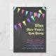 Multiple strands of colourful bunting flags on a chalkboard background, make this invitation bright and festive for the New Year's.
