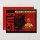 In a square are 2 pigs: one (black papercut Chinese style) seems to come sniff a golden papercut shape (inside is the second pig with the Chinese symbol). Behind them there is a red background formed by large decorative and ornamented letters with the words: "Pig Year" and at the top "Year of the Pig" + large 2019. Design on horizontal postcard. Available in vertical size. You can easily change year (font, colour, size and position), background colour and size of the design by clicking the customise button. Matching greeting card, postcard, craft products and more. Perfect for Chinese New Year 2019 of the Pig or birthday (people born in the Pig year).