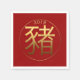 Golden Pig Symbol with an embossed digital effect on dark red background + 2019 on paper napkin. You can easily change the Year (font, colour, size and position) by clicking the customise button. Matching paper plate and more... Perfect for Chinese New Year of The Pig 2019 or Birthday (people born in Pig year). ------ "The Pig (豬) is the twelfth and the last sign of the Earthly Branches (亥). In the continuous Sexagenary cycle, every twelfth year corresponds to Hai, and is commonly called "the Year of the Pig" (豬年). There are five types of Pigs, named after the Chinese elements. In order, they are: Metal, Water, Wood, Fire, and Earth.