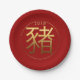 Golden Pig Symbol with an embossed digital effect on dark red background + 2019 on paper plate. You can easily change the Year (font, colour, size and position) by clicking the customise button. Matching paper napkin and more... Perfect for Chinese New Year of The Pig 2019 or Birthday (people born in Pig year). ------ "The Pig (豬) is the twelfth and the last sign of the Earthly Branches (亥). In the continuous Sexagenary cycle, every twelfth year corresponds to Hai, and is commonly called "the Year of the Pig" (豬年). There are five types of Pigs, named after the Chinese elements. In order, they are: Metal, Water, Wood, Fire, and Earth.