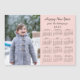 Send your wishes for a Happy New Year with a 2021 calendar personalised with your photo to the left of it, and your greeting and name above it. Replace the sample image and text in the sidebar. The custom text is in a cool black handwritten script font. Below it is a black 2021 calendar on a coral background.