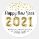 Modern gold balloon numbers 2021 and the greeting HAPPY NEW YEAR personalised with your company, organisation, family name or other text. Use as envelope seals or party favour stickers. Contact the designer via Zazzle Chat or makeitaboutyoustore@gmail.com if you'd like this design modified, on another product or would like coordinating items.