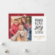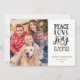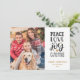 This stylish 2021 Christmas photo card features the typography Peace, Love, Joy, Christmas alongside your family photo. Personalise with your greeting and family name.