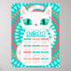 This fun and colourful poster features a pretty white kitty with 2022 calendar and colourful patterns - the perfect gift for anyone who loves cute kitty art