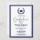 Invite your friends and loved ones to your graduation party with this modern wreath and mortarboard navy blue-bordered invitation.