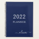 2022 Navy Blue White Girly Script Monogram Name Planner