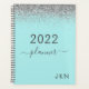 2022 Silver Teal Aqua Blue Girly Glitter Monogram Planner