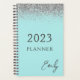 2023 Aqua Blue Teal Silver Glitter Monogram Planner