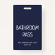 Classic White Script Navy Blue Simple Minimalist Back To School Bathroom Hall Pass Badge. Easy to customise. Get yours today!