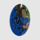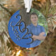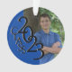Blue, with black and white 2023, varsity graduation photo ornament for graduates of the class of 2023 with a place for up to two photos or just one picture and add text on the other side.