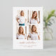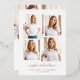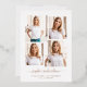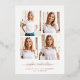 This simple yet ultra modern graduation announcement features four of your favourite personal photos in a unique, layered look photo grid. The trendy design features the name of the grad in elegant, gold foil handwritten script typography, and has a spot for the school and class of 2023 information in a coordinating sans serif gold font. There is room for another photo (so a total of five photos all together) and a personal message or grad party invitation information on the back with black text.
