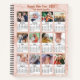 2023 Rose Gold Calendar Modern Family 12 Photo Collage Custom Notebook featuring 2023 Calendar with 12 Family photos. All the photos and texts are pre-arranged for you to personalise easily and quickly with your own details.