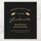 Celebrate your graduate's milestone in style with these custom graduation wine bottle labels, featuring the words "Congratulations to our Graduate" in gold-coloured text on a black background, decorated by a pair of gold mortar board caps. The word "Graduate" appears in a graceful handwriting-style script. Personalise it with the grad's name, school, and year of graduation.