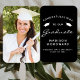 Help your graduation guests keep cool during the ceremony or party with these custom photo graduation hand fans, featuring the words "Congratulations to our Graduate" in white text on a black background. The word "Graduate" appears in a graceful handwriting-style script. A pair of white mortar board caps decorate the top portion of the fan. Personalise one side with your grad's name, school, and year of graduation. Easily replace the sample image on the other side with a photo of your grad.