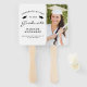 Help your graduation guests keep cool during the ceremony or party with these custom photo graduation hand fans, featuring the words "Congratulations to our Graduate" in black text on a white background. The word "Graduate" appears in a graceful handwriting-style script. A pair of black mortar board caps decorate the top portion of the fan. Personalise one side with your grad's name, school, and year of graduation. Easily replace the sample image on the other side with a photo of your grad.