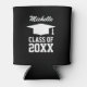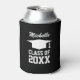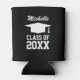 Graduate party bottle and can coolers with graduation hat / cap. Custom class of 2024 etc. Personalizable text and background colour. Create your own party favour Cosy gift idea for high school graduate students, college, nursing school, university etc. Script typography for name or monogram. Keeps drinks cool. Beverage holder with double sided print. Customisable background colour. Also nice for school reunion parties.