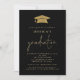 2024 Graduation Photo Gold Glitter Grad Cap Black Invitation